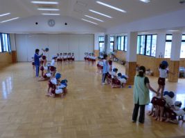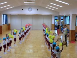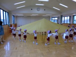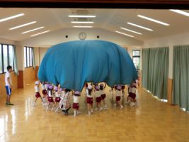 今日の年中組の体育指導は、パラバルーンの練習を行いました...
