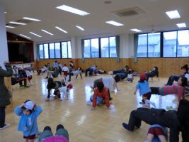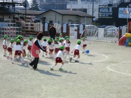 今日は気温が低く、曇り空でしたが、年長組は2クラス(ゆり、ふじ)(すみれ、すずらん)に分かれて外で体操指導を行いました...