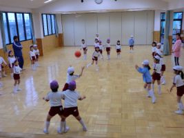 今日の年中組の体育指導はボールを使った“中当て”でした...