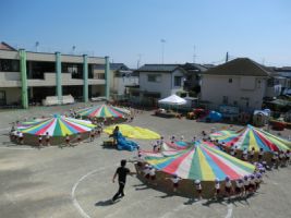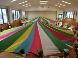 今日の年中組の体育指導はパラバルーンの練習を行いました...