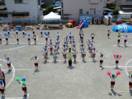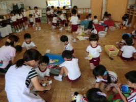 今日は年長組がお泊り会で行う盆踊りの練習を行いました...