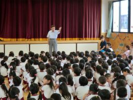 今日は避難訓練を行い、消防署の方が消防車で幼稚園まで来て下さいました...