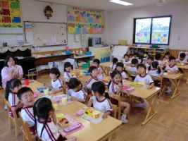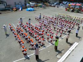 今日、年中・年少組は園庭で集会を行いました...
