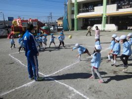 今日の年長組の体育指導は、園庭でドッジボールを行いました...