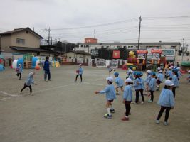 今日の年中組の体育指導は、園庭で縄跳びとボールを使った運動を行いました...