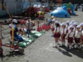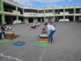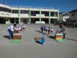 今日の年中組の体育指導は、園庭で跳び箱を行いました...