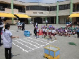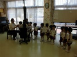 今日の年中組の体育指導は、ホールでマット運動を行いました...