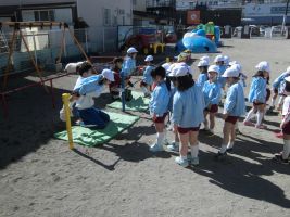 今日の年中組の体育指導は、園庭で縄跳びと鉄棒を行いました...