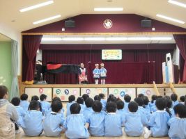 今日は学級閉鎖で参加できなかったひまわり組の3月生まれのお友だちの誕生会がホールで行われました...
