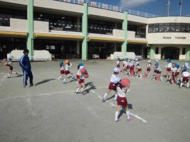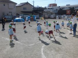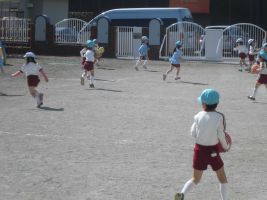 今日の年長組の体育指導は、園庭でドッジボールを行いました...
