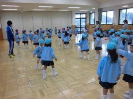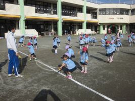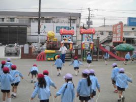 今日の年中組の体育指導は、園庭で縄跳びを行いました...