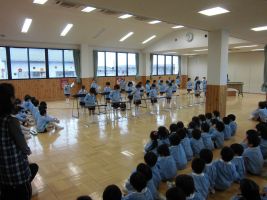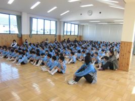 今日の年長組の体育指導は、ホールでドッジボールを行いました...