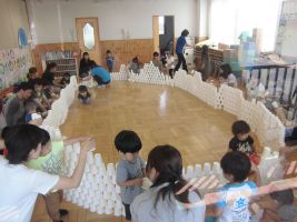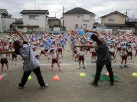 今日の年長組の体育指導は、市民体育館で運動会の練習を行いました...