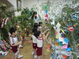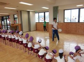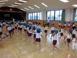 今日の年長組の体育指導は、ホールで組体操を行いました...