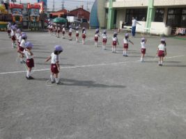 今日の年中組の体育指導は、3クラス合同でボール当てゲームを行いました...