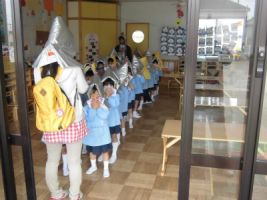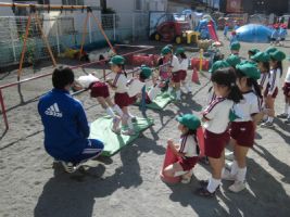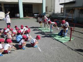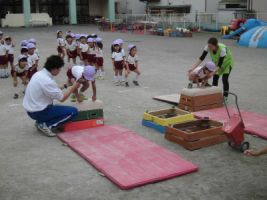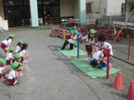 今日の年中組の体育指導は、園庭で跳び箱を行いました...