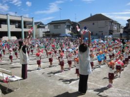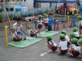 今日は年中組と年長組が富士見公園で、年少組は園庭で運動会の練習を行いました...