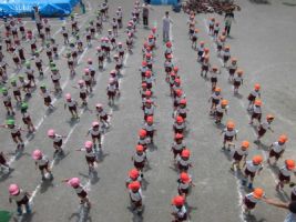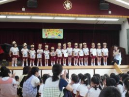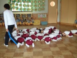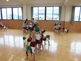 今日の年長組の体育指導は、ホールで組体操の練習を行いました...