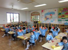 今日の年長組はせいさく帳に貼るてんとう虫を作りました...
