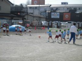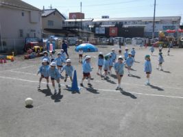 今日の年長組の体育指導は園庭でサッカーを行いました...