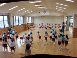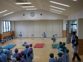 今日の年中組の体育指導はホールでボールを使った運動を行いました...
