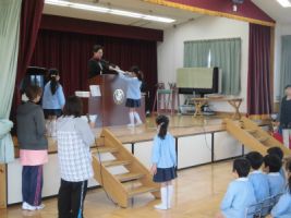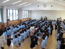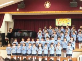 今日の年長組さんはホールで卒園式の練習を行いました...