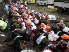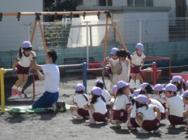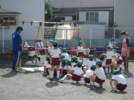 今日の年長組の体育指導は、園庭で鉄棒を行いました...