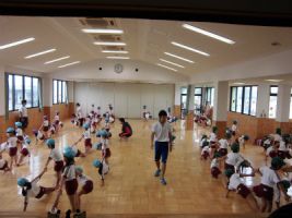 今日は不安定なお天気でしたが、雨は降っていなかったので園庭で年中組はパラバルーン、年長組はお遊戯の練習を行いました...