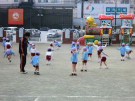 今日は午前保育だったので、年中組の体育指導は2クラス合同で行われました...